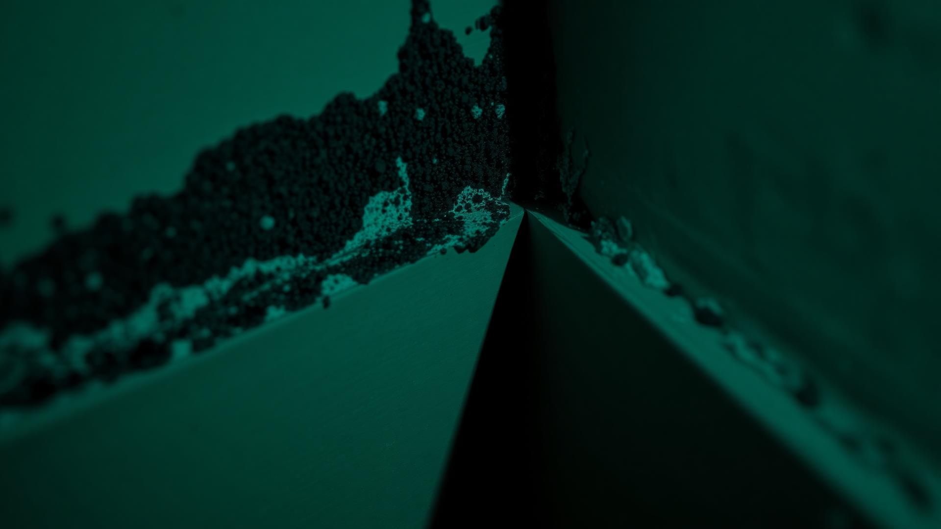 Often mistaken for dust or mineral deposits. It's an active mold colony that spreads fast on wood and drywall.